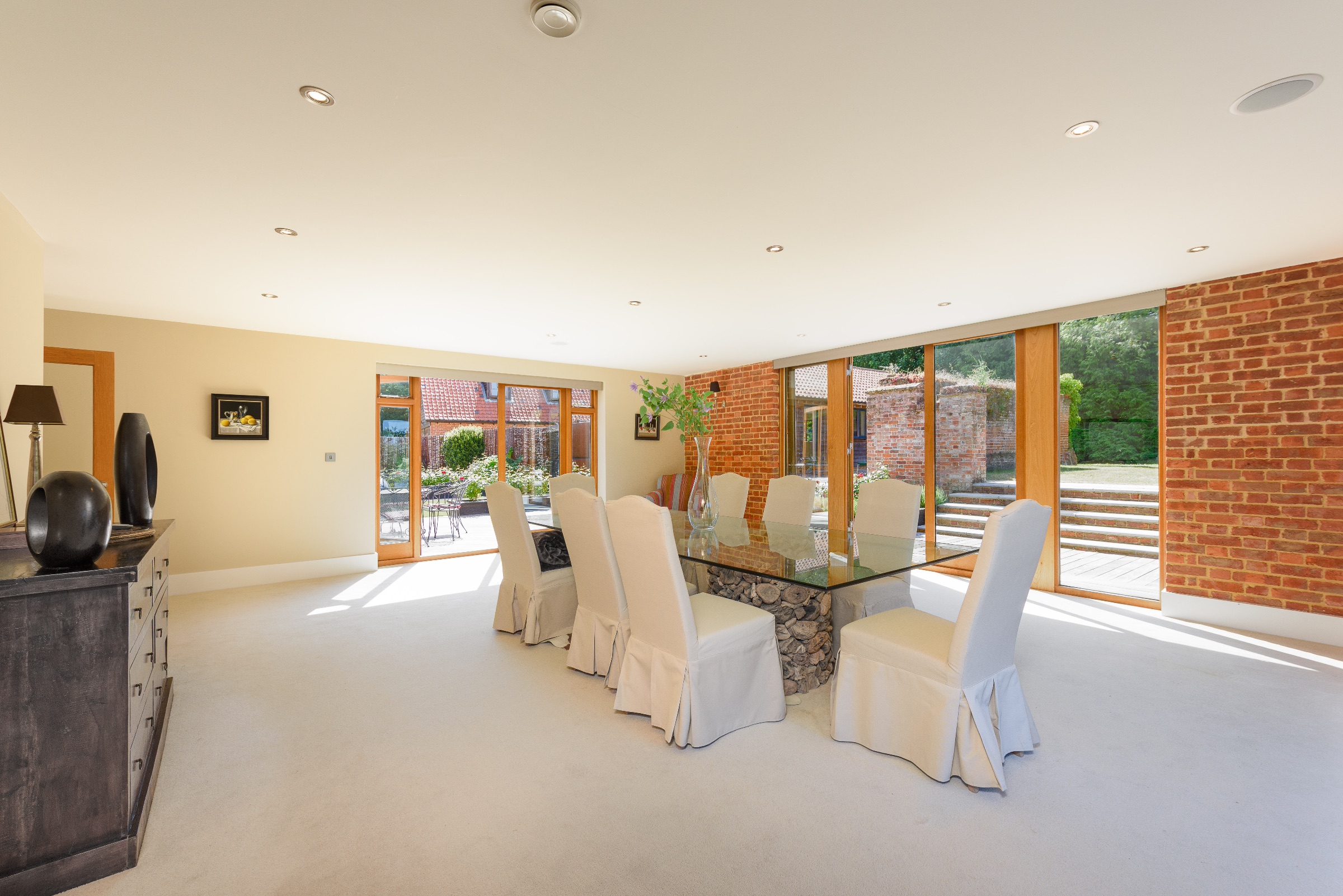 Leading further into the ground floor you will find a stunning formal reception room with fireplace and cosy woodburning stove, the grand dining room with seating for 16 guests and wrap around French doors. Completing the floor is a family snug, a tucked away office and study, a wine cellar, utility room and two cloakrooms.