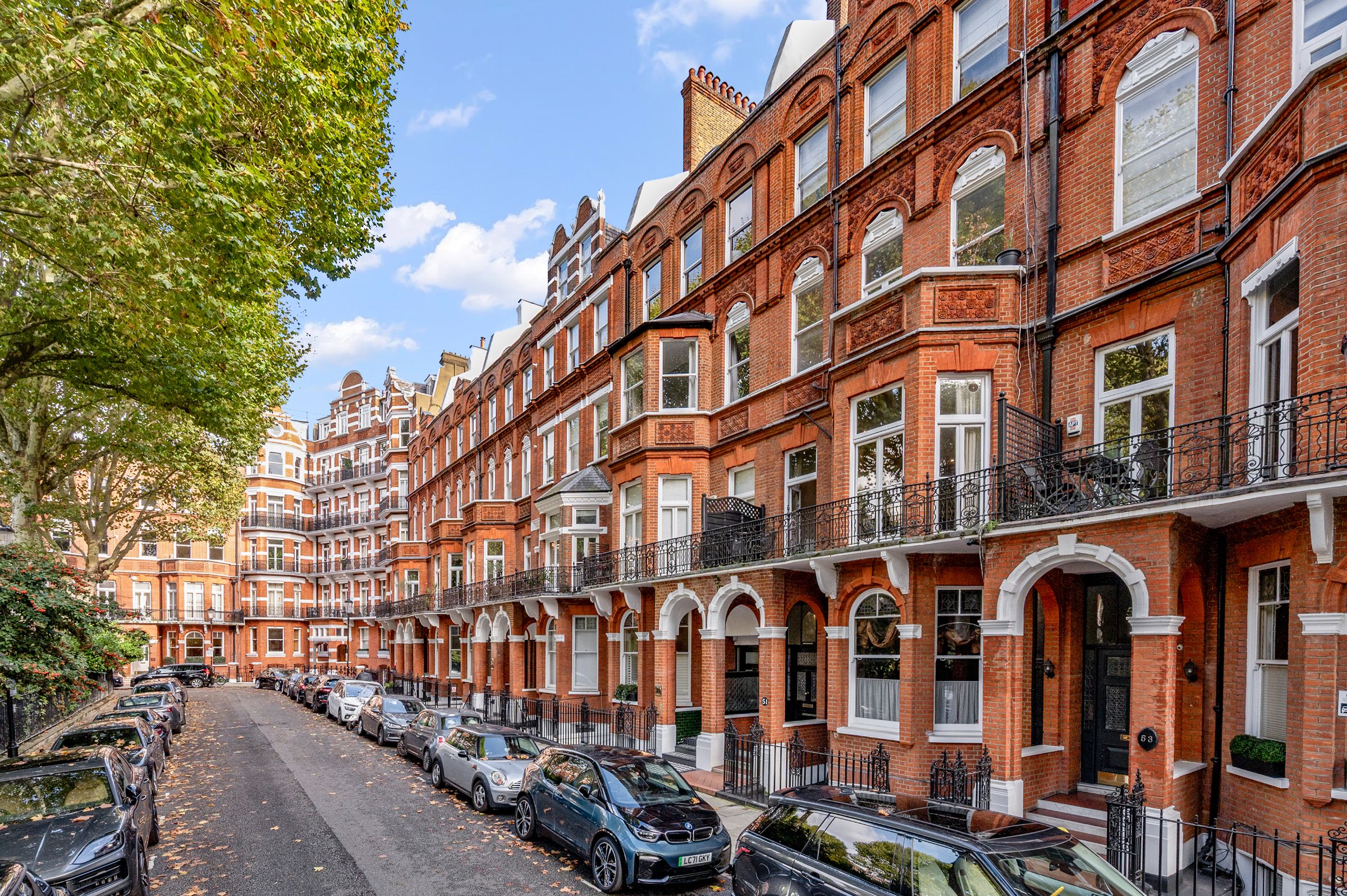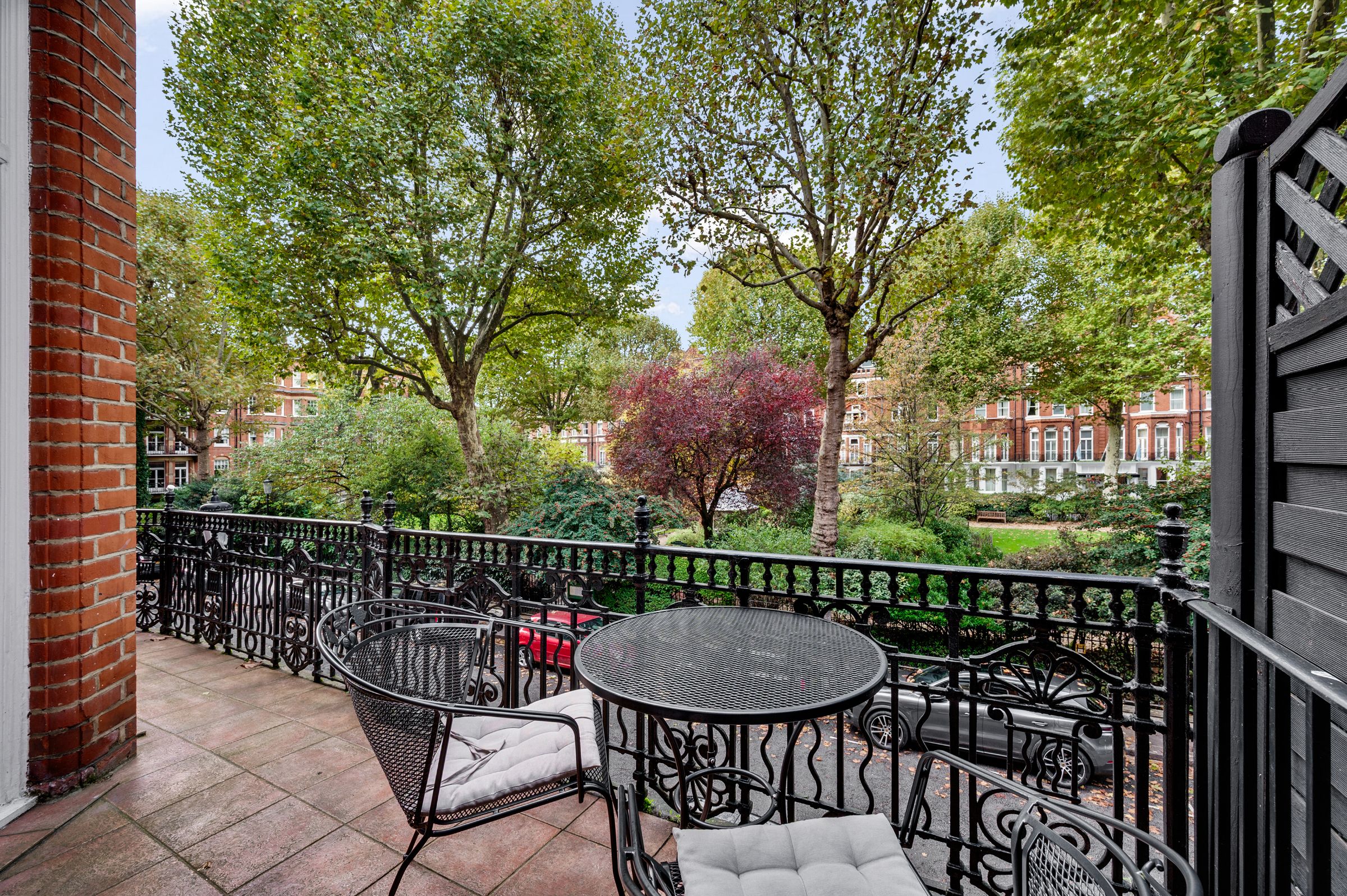 A stunning two-bedroom, two-bathroom apartment set on the first floor of a well-maintained red-brick building on one of Earl's Court's most sought-after garden squares, offering over 1,000 sq ft of living space, impressive ceiling heights, a private balcony, and access to communal gardens.
