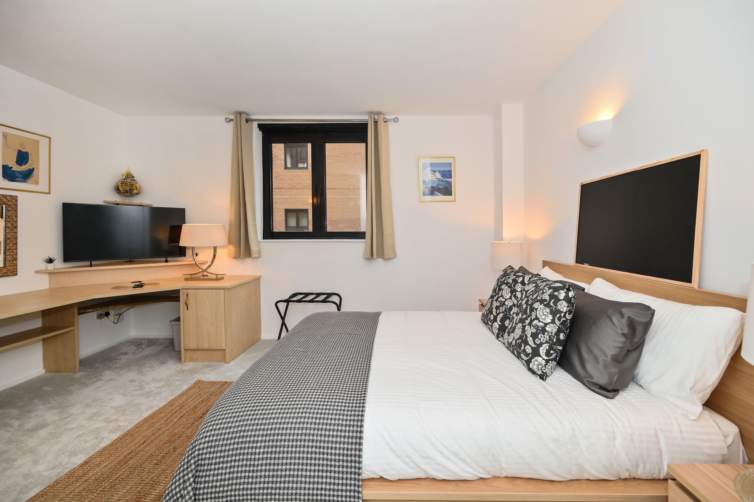 A beautifully newly refurbished, split level, two-bedroom, two bathroom apartment over 1,100 sqft.