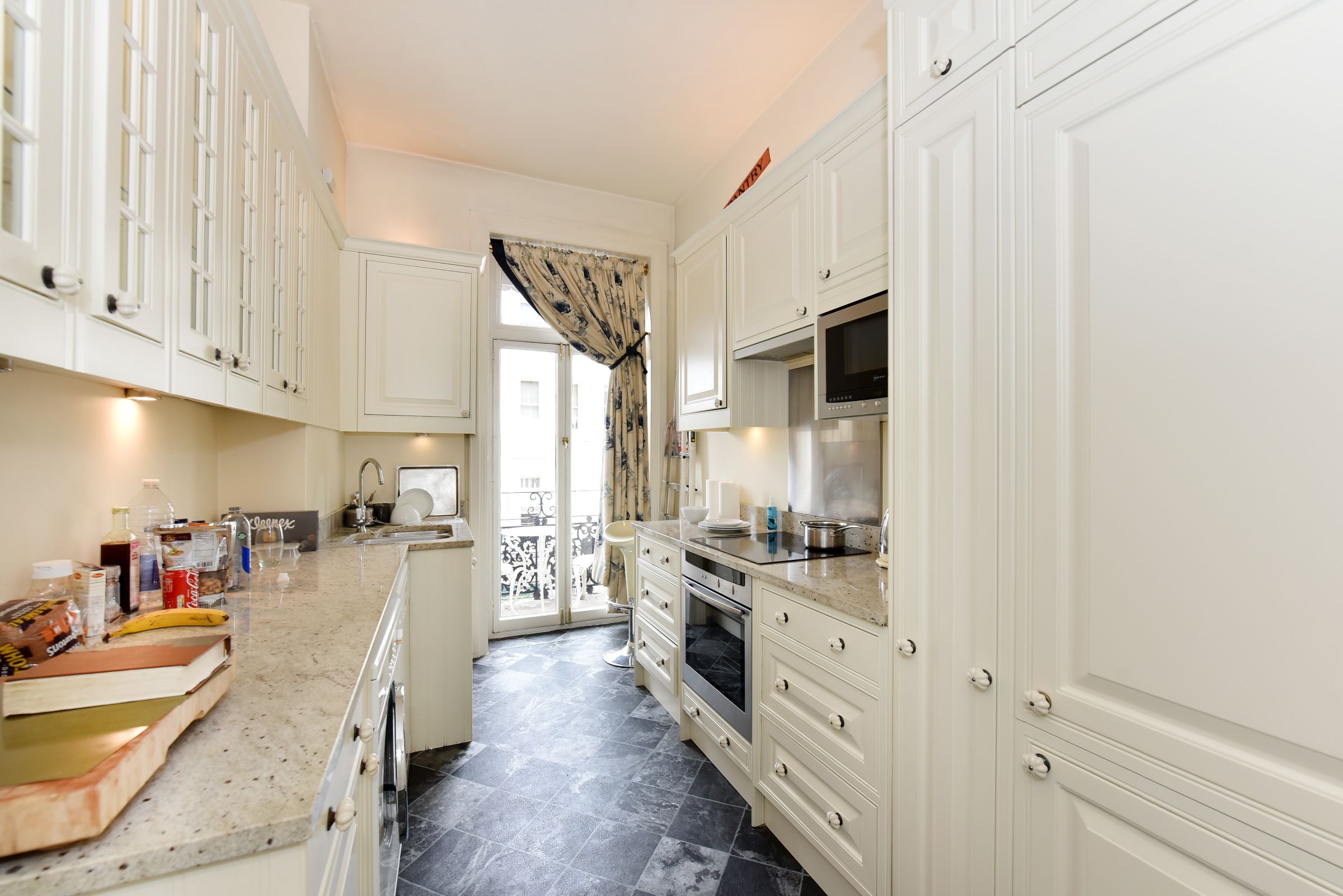 Offered on a short-let basis, this portered red-brick mansion block presented two-bedroom apartment spans over 800 sq ft and offers two large balconies..