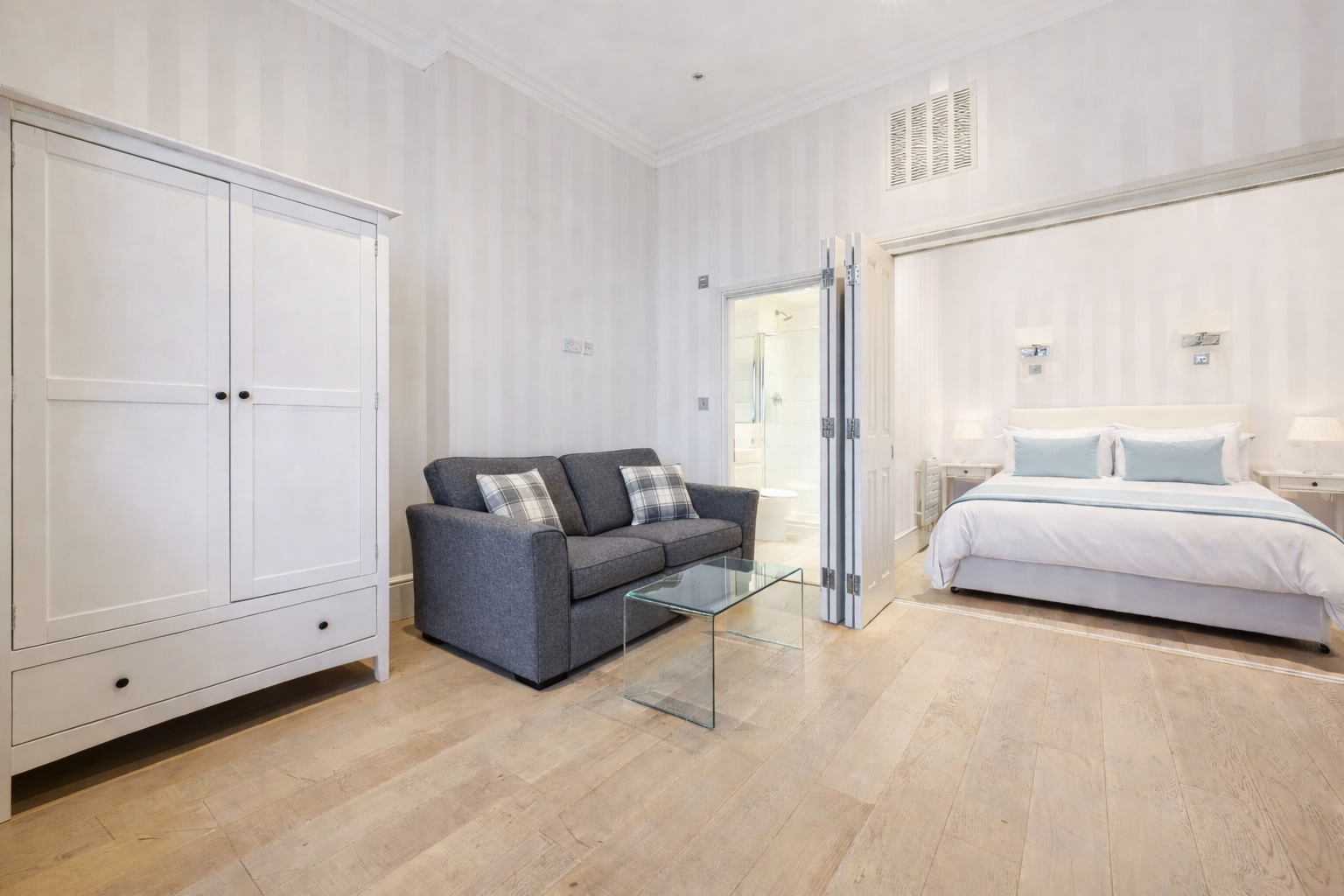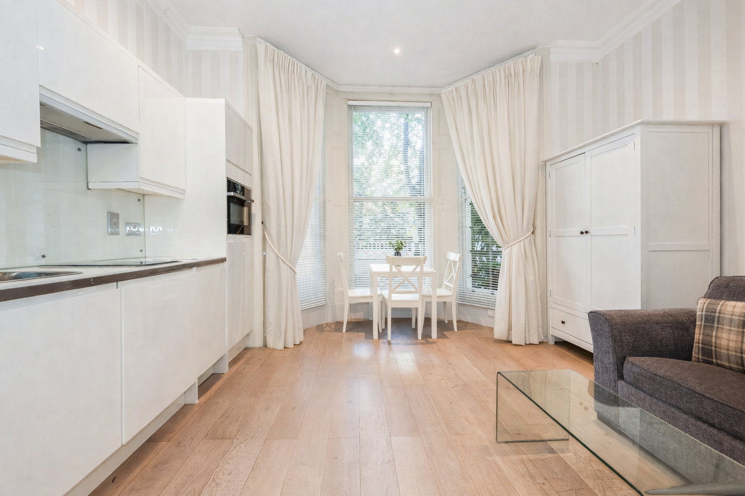 This well presented and naturally bright studio is located on the raised ground floor of a period conversion and boasts a spacious reception room and a separate sleeping area.