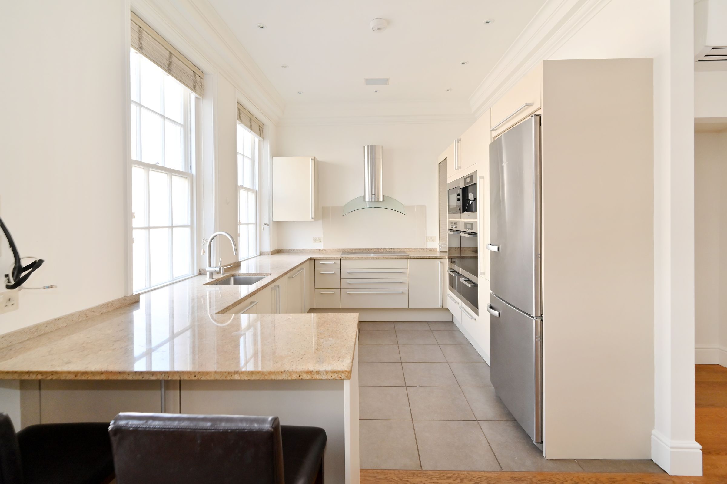 Located in an impressive red brick period building (with lift), the apartment boasts a stunning double reception room of nearly 25 feet wide with two sets of French doors opening onto the balcony. The modern kitchen/dining room provides excellent space for entertaining.