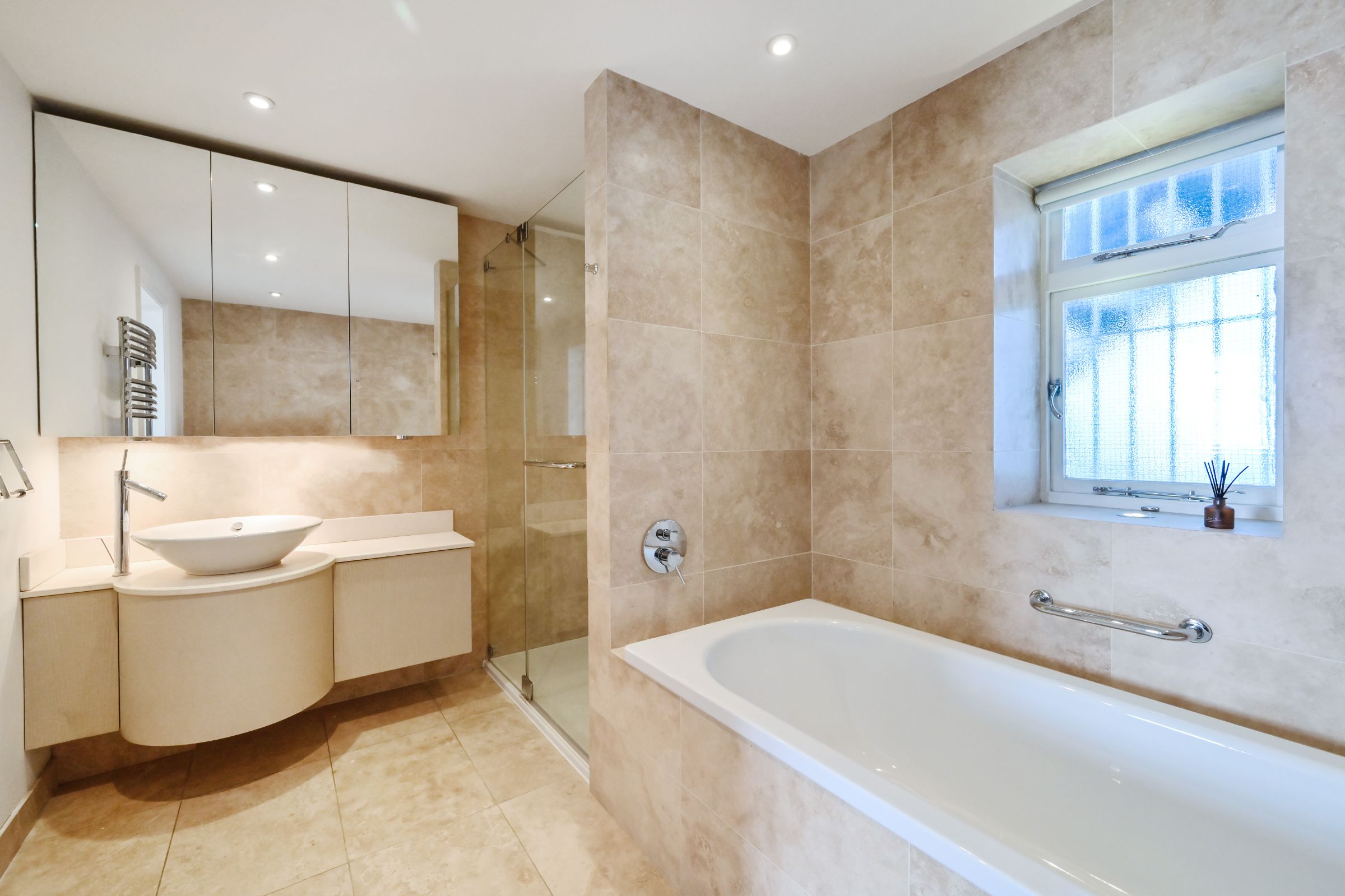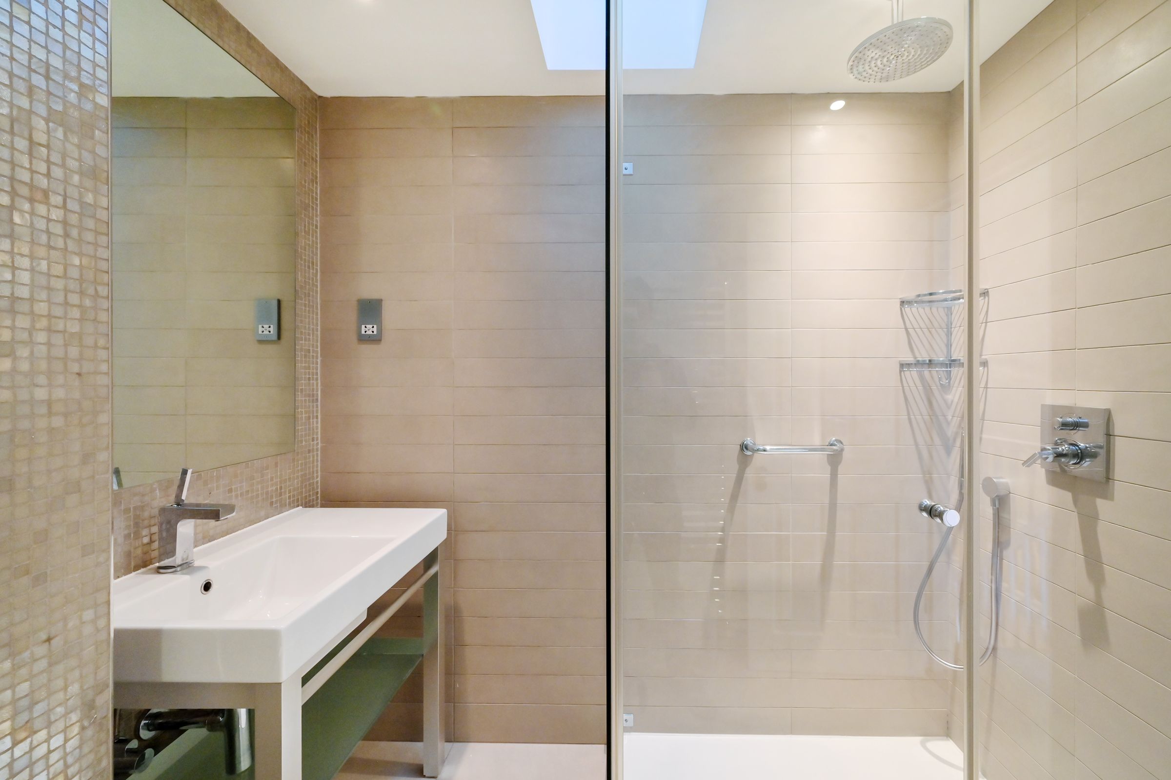 The upper floor comprises a principal bedroom with walk-in wardrobe and en suite bathroom, two further double bedrooms, and an additional shower room. A private roof terrace offers the perfect retreat and further space to enjoy.