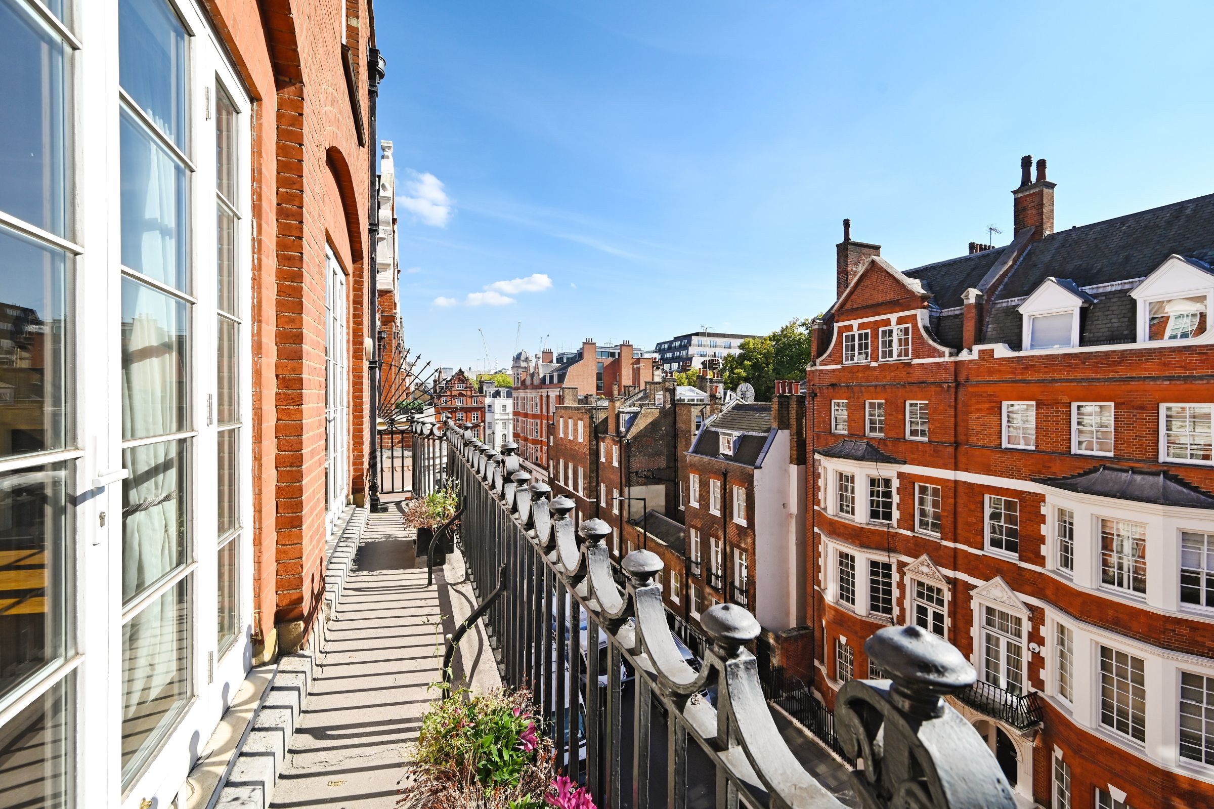This elegant three-bedroom apartment set on the third and fourth floors (with lift) offers high ceiling throughout, a south-facing balcony, and a private roof terrace, ideally located in the heart of Mayfair.
