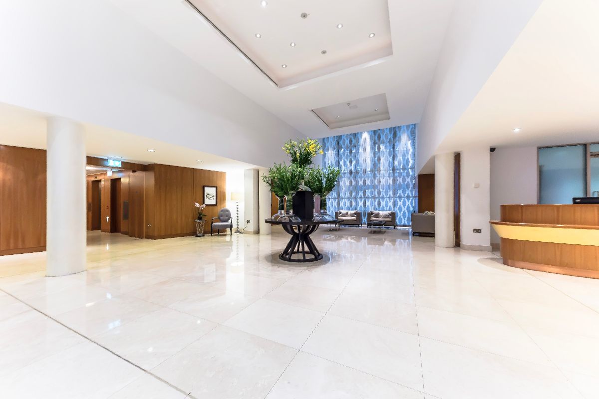 This property comprises a large reception room, separate fully-fitted kitchen, master bedroom with en-suite bathroom and a second double bedroom with built-in wardrobes and a family bathroom. The building features many amenities including a secure underground parking, a gym and a swimming pool.