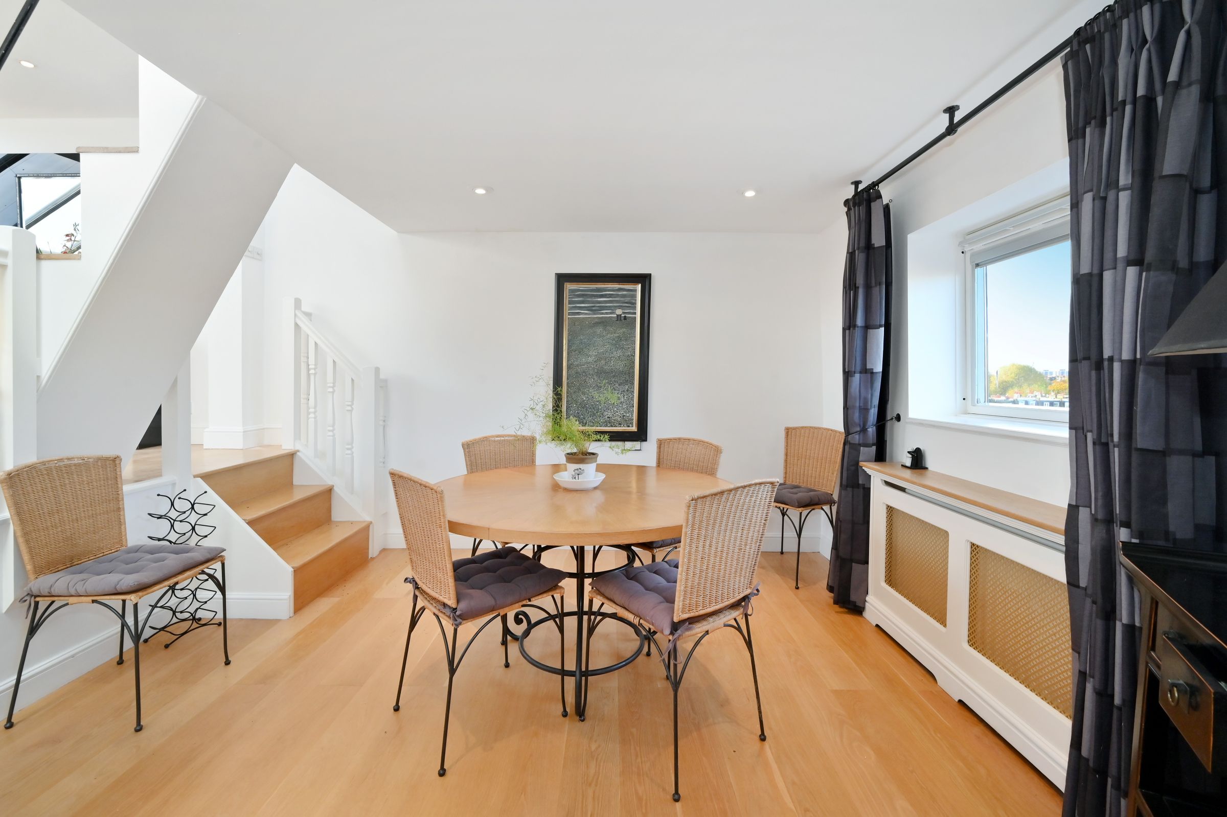 Set on the fourth floor (with lift) of a beautiful period building, this duplex three bedroom apartment has a lovely, bright, south-facing semi open-plan kitchen / reception room leading onto a roof terrace.