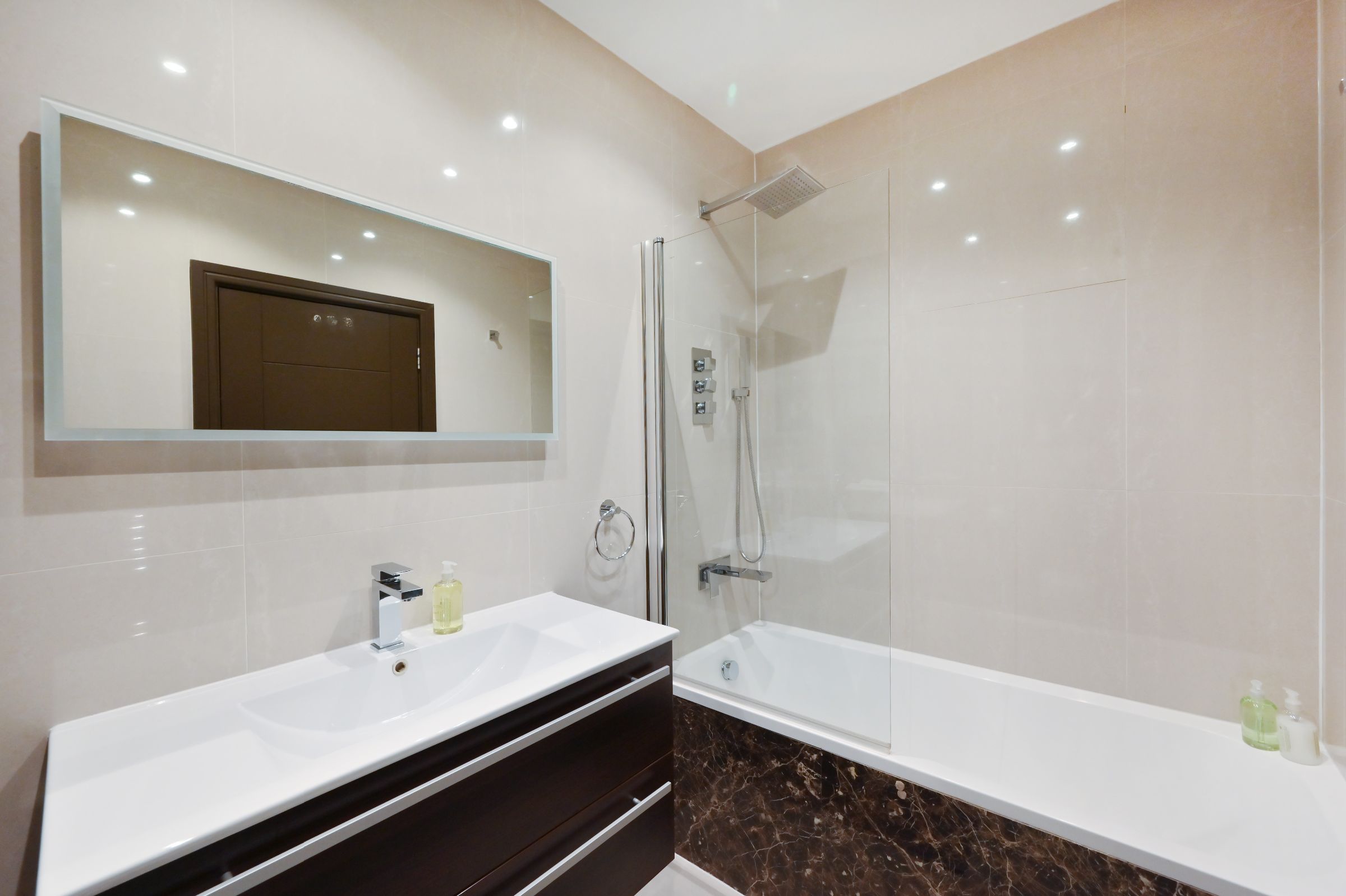 Offered on a short-let basis, this sleek and modern two-bedroom, two-bathroom apartment is beautifully finished and located on the first floor of a classic redbrick period building.