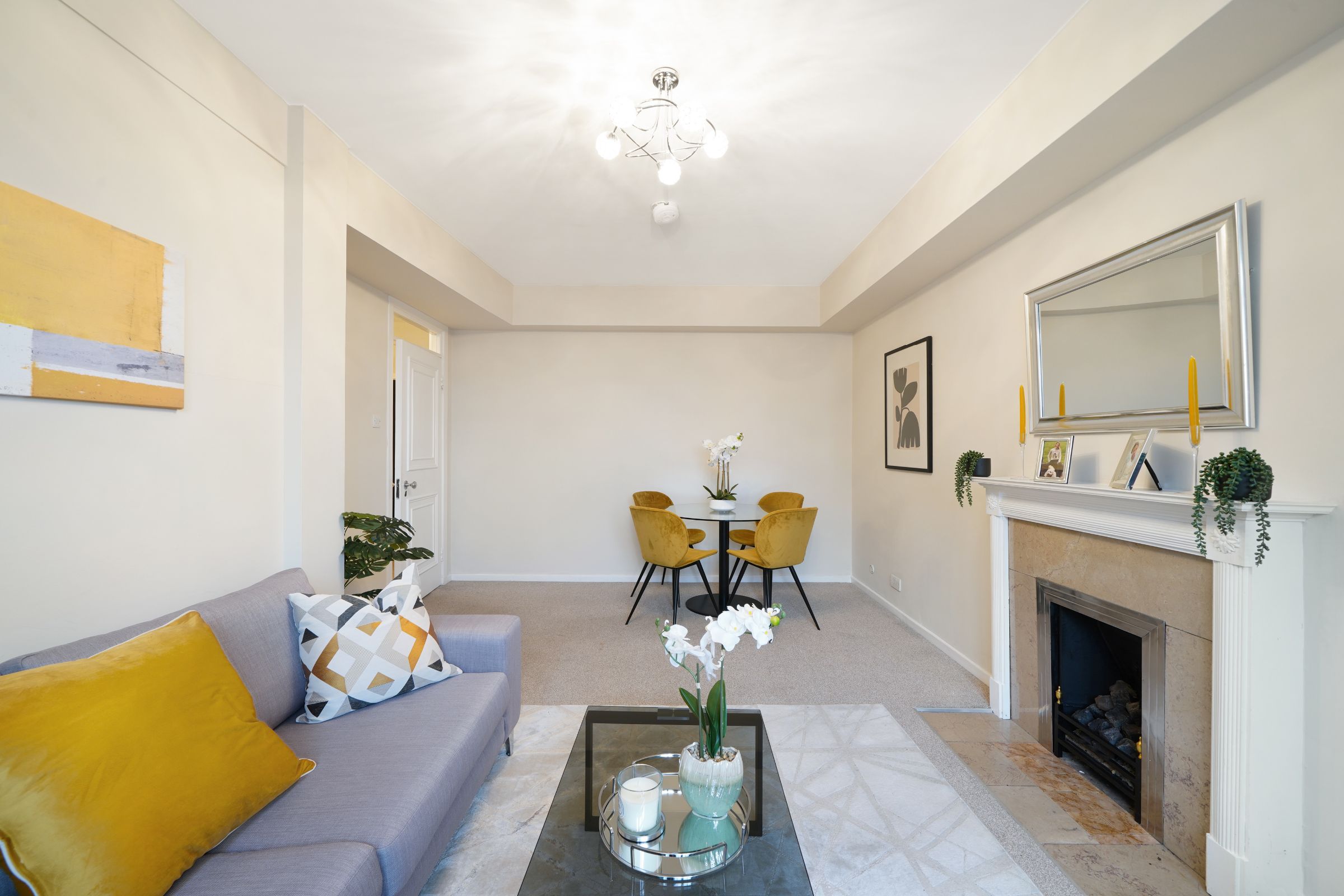 Finished to a tasteful standard throughout, the property features a generous separate reception room with a feature fireplace, creating a warm and sociable space to relax or entertain. Thoughtfully designed storage solutions and an inviting dining area further enhance the practicality of the apartment.