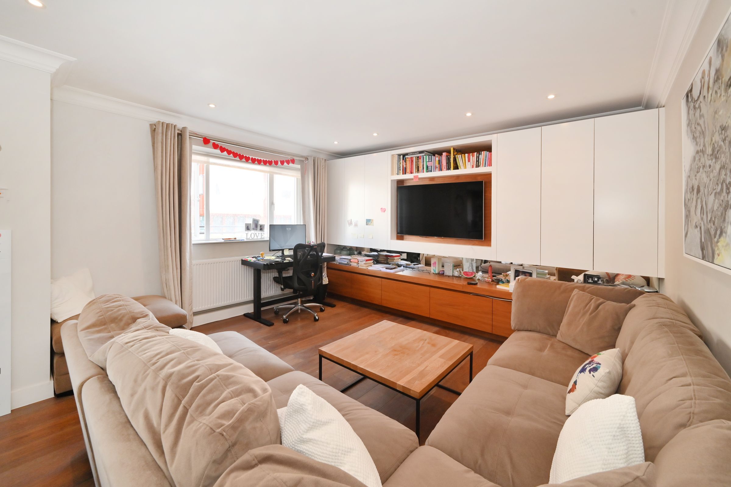 A stunning two-bedroom, two-bathroom apartment set on the first floor of a well-maintained period conversion, boasting over three meters of ceiling height and overlooking beautiful communal gardens, as well as benefiting from its own private terrace.