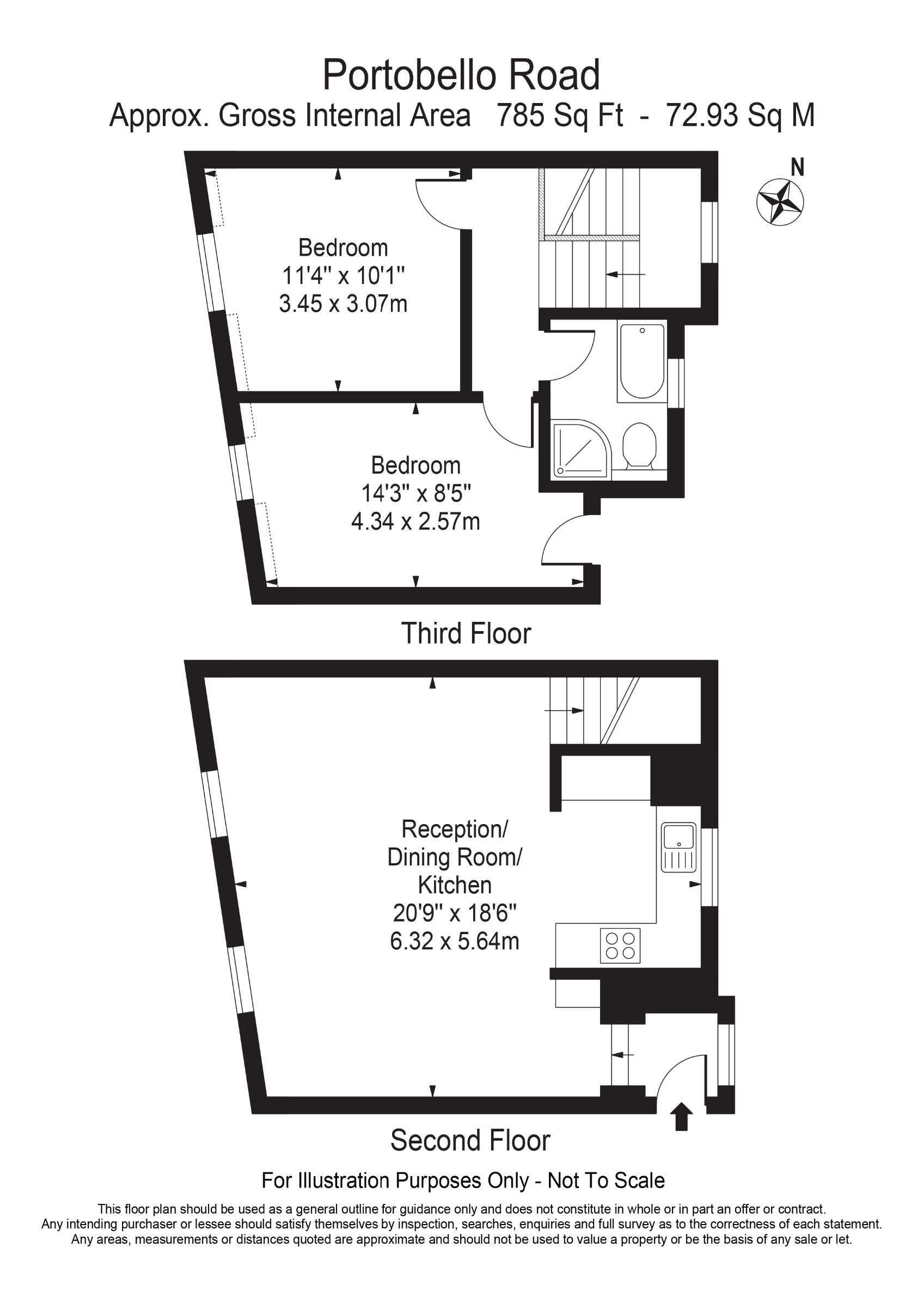 Landstones are delighted to present this stunning, fully refurbished split-level two-bedroom apartment, set on the second floor of a charming period building on the world-famous Portobello Road
